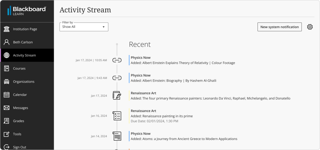 Our activity Stream is one of the 3 initial pages a user can see. This is set but the institution. However, We’ve identified some usability issues that reduce the use of this page, the satisfaction with the LMS and the trust of our users in the system.